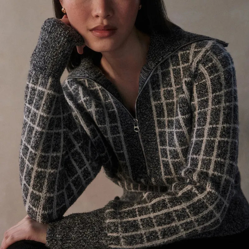 Affirmez votre style avec le Furley. Ce sweat-shirt classique à demi-zip et col rabattu est un modèle facile à enfiler, idéal pour une superposition élégante. Confectionné en jacquard bouclé peluche à carreaux, il offre une texture douce, parfaite pour se lover dedans.